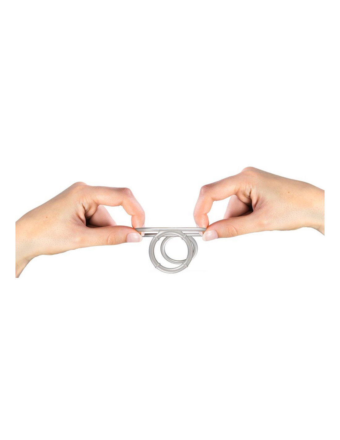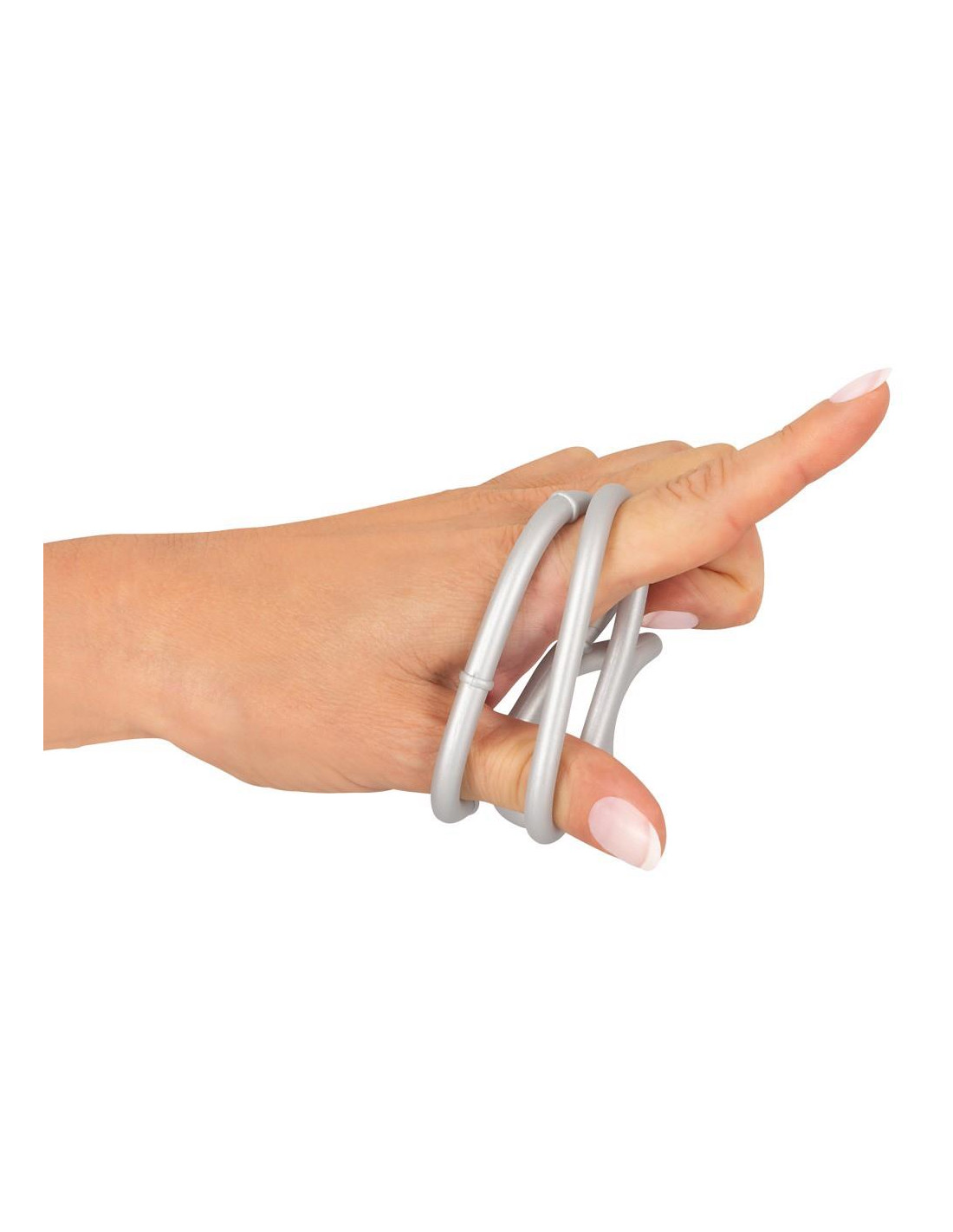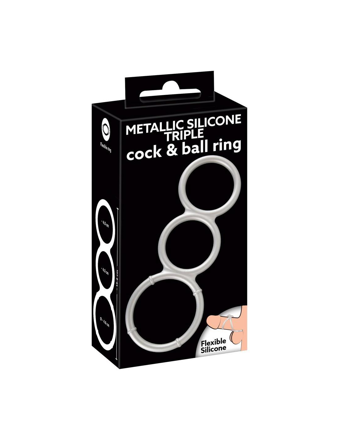 Very stretchy Metallic Silicone Triple cock and ball ring by You2Toys in a cool metal look – but with the comfort of silky soft silicone. The 3 combined silicone rings fit the penis and testicles perfectly, are comfortable to wear and support a long-lasting erection thanks to the blood flow restriction effect. Highly flexible, several wearing variations are possible.