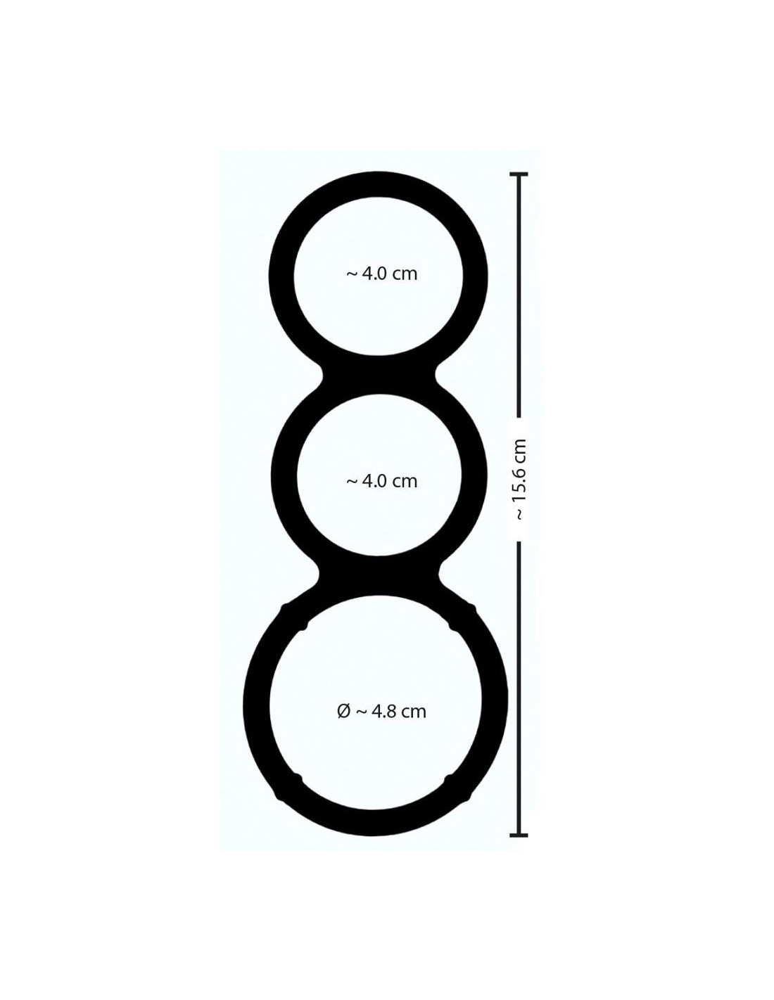 Total length 15.6 cm; inner Ă 2 x 4 cm and 4.8 cm, very stretchy.