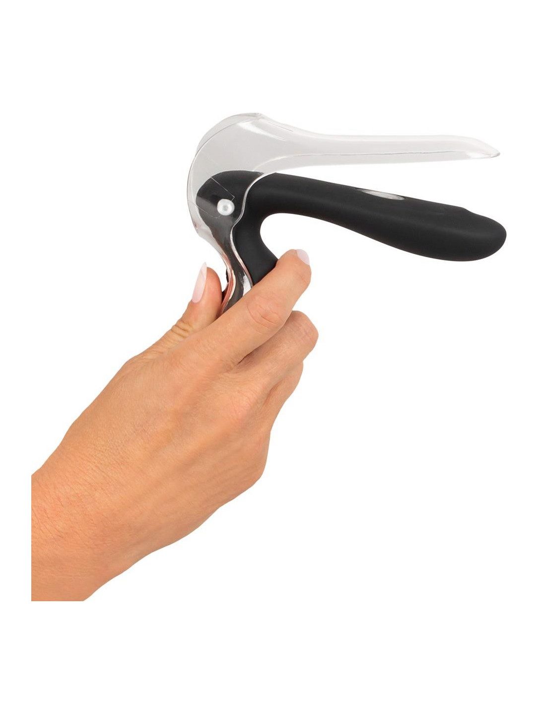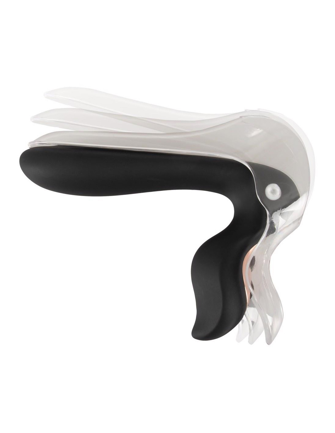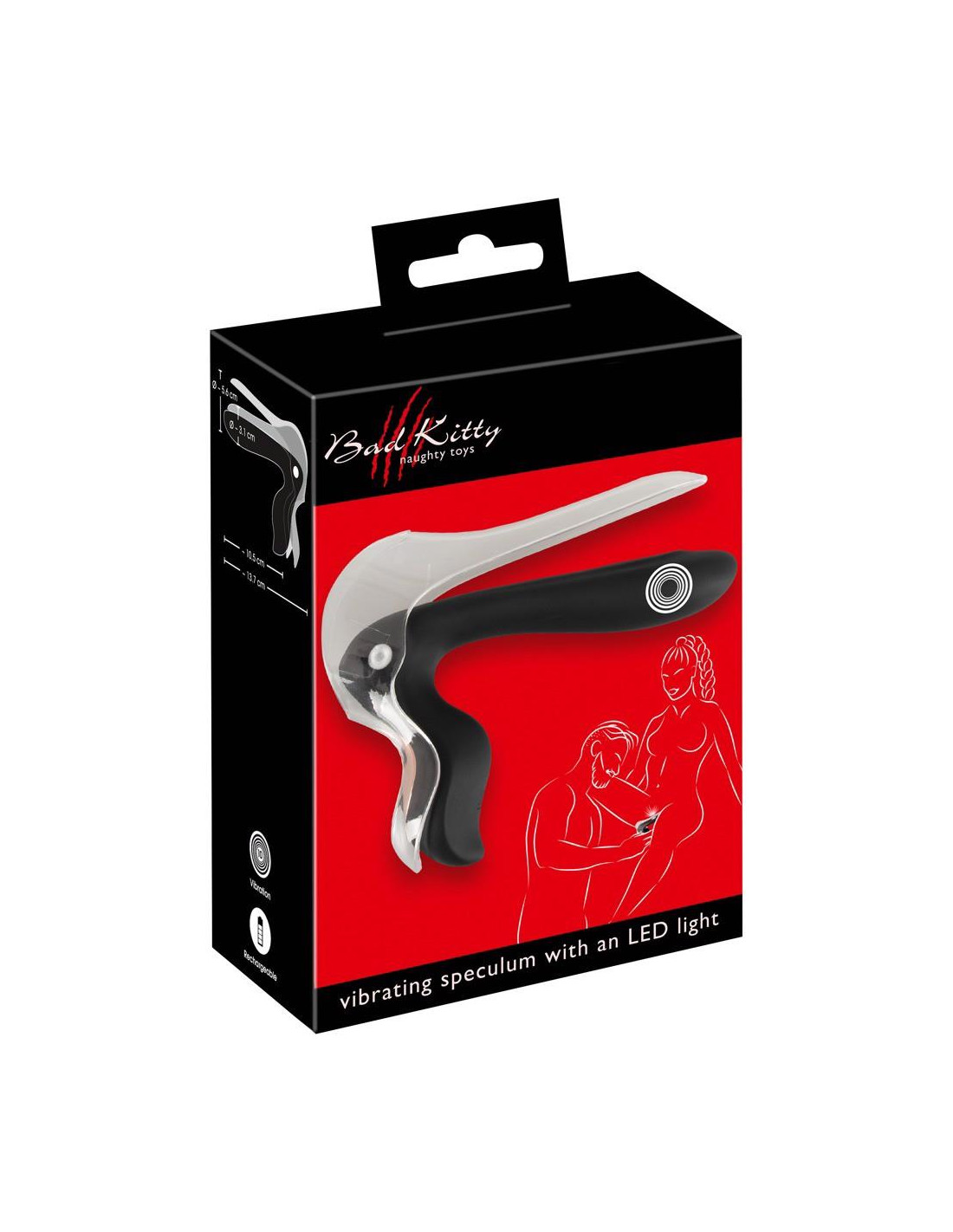 The Vibrating Speculum from Bad Kitty with integrated LED light and vibration. It can be easily inserted for vaginal and anal examinations and can be comfortably spread up to 2 cm. The upper blade is transparent, to provide a better view.