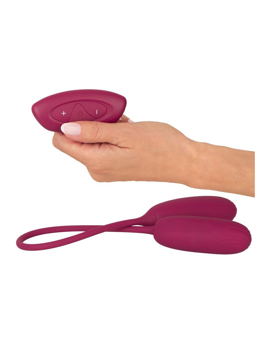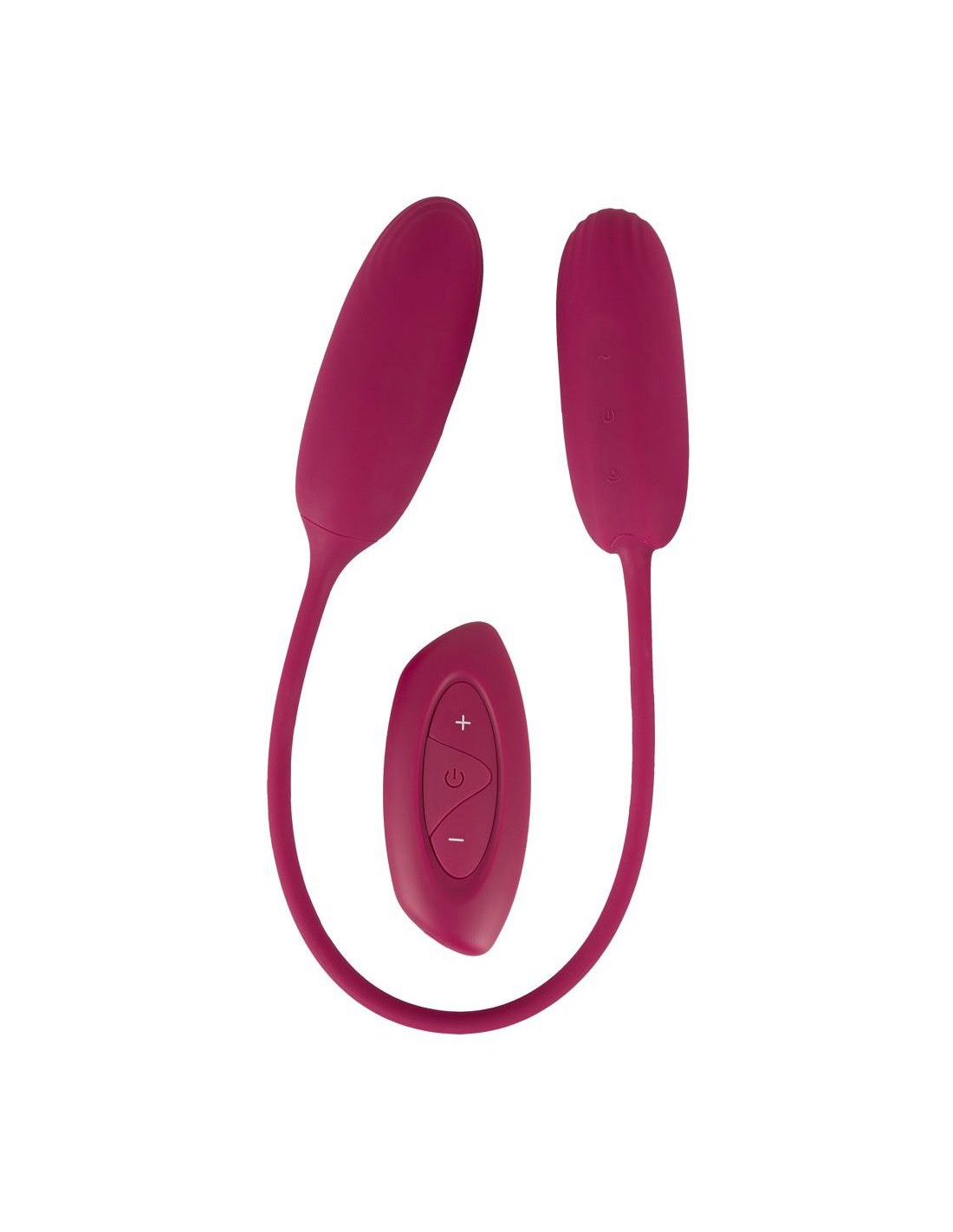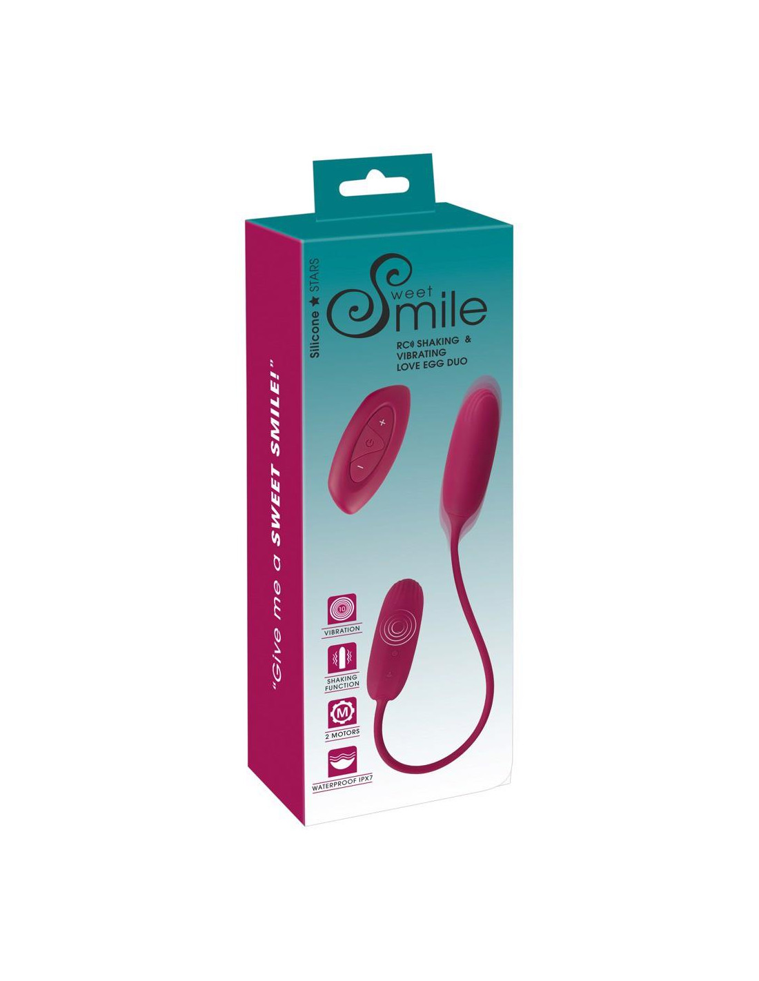 sweet smileThe RC Shaking & Vibrating Love Egg Duo by Sweet Smile surprises with 2 powerful bullets connected through a 31 cm long flexible silicone strap. One bullet shakes and pulsates, the other vibrates. Offering simultaneous vaginal/anal or external/internal stimulation when playing solo, as well as dual stimulation when playing as a couple.