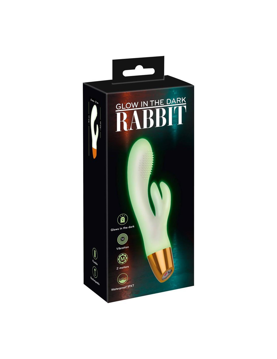 The 10 vibration modes can be easily adjusted at the push of a button. The button on the vibrator is also illuminated with an LED light. The 2 powerful motors provide reliable power. The Glow in the dark Rabbit can be recharged with the included USB magnetic charger.