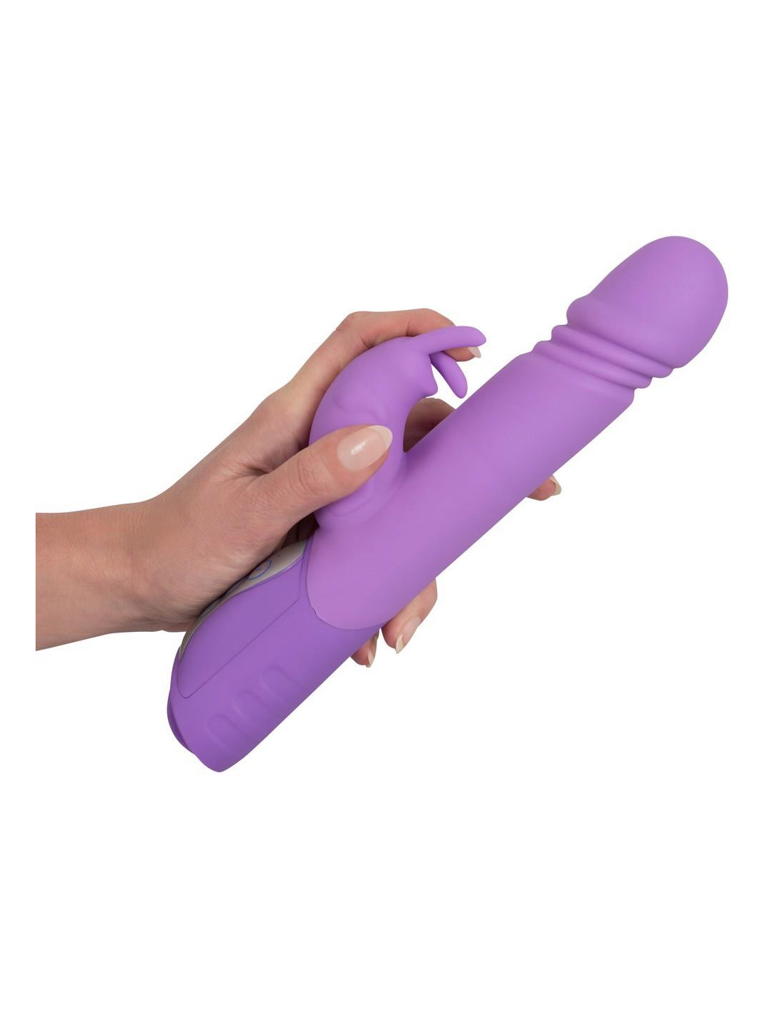Ten fioletowy wibrator króliczek ze stymulatorem łechtaczki w kształcie małego króliczka z ruchomymi uszkami to prawdziwa moc: rozpieszcza 10 różnymi trybami wibracji i ekscytującą funkcją pchania w 3 prędkościach. 3 stymulujące przyjemność rowki pod czubkiem.