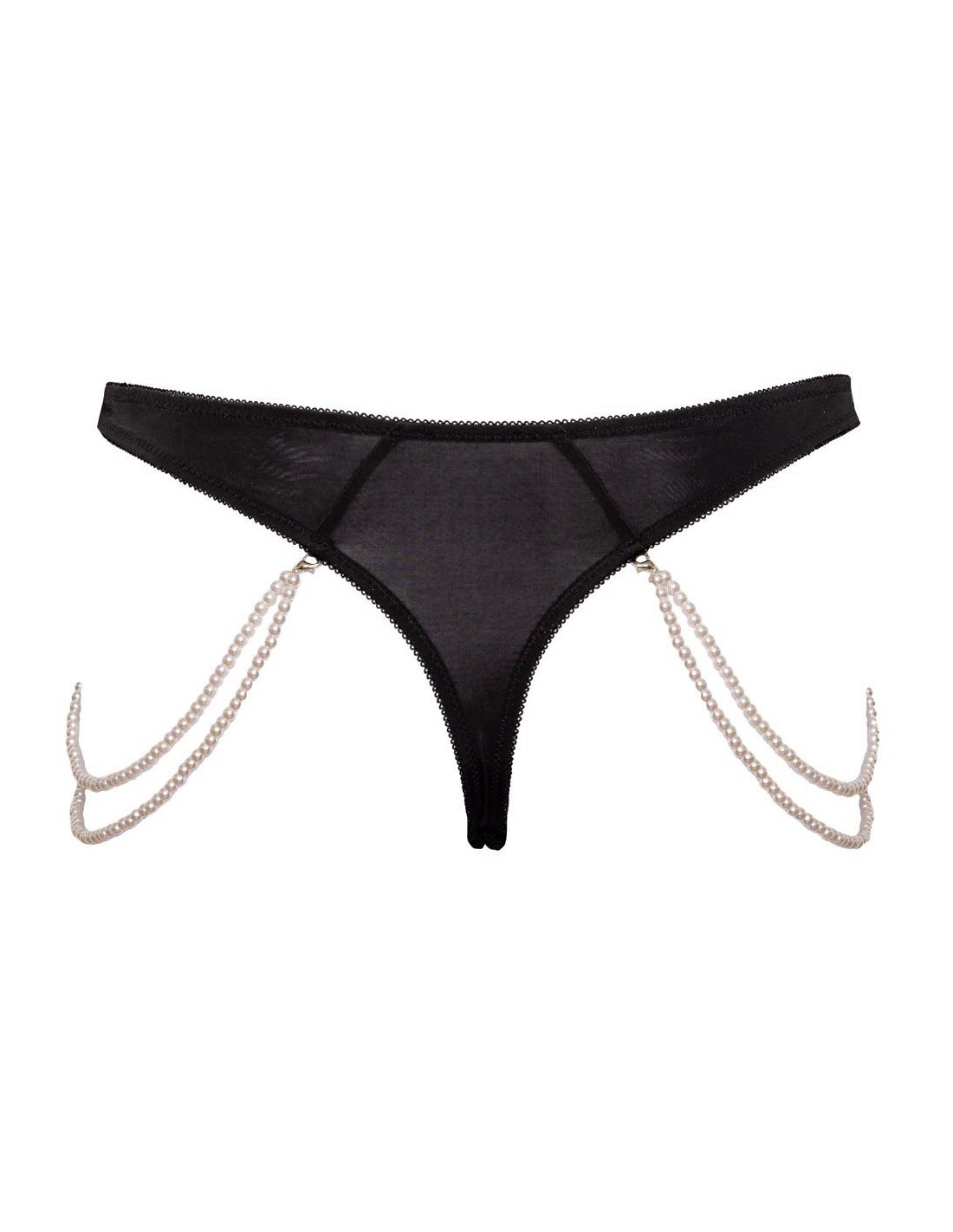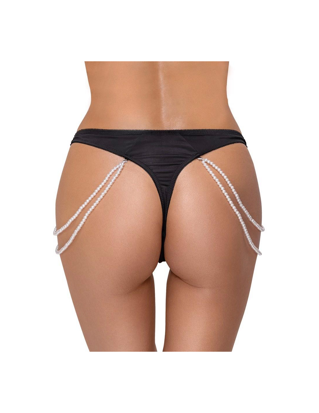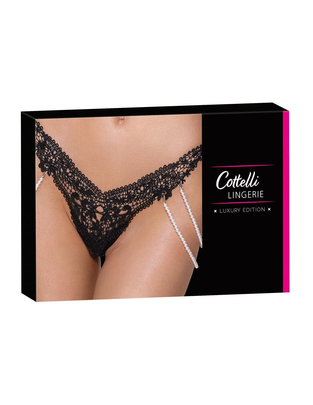Cottelli CollectionStringi Rio marki Cottelli LINGERIE wykonane z cennej haftowanej koronki (przód) połączonej z elastycznym materiałem dopasowującym się do kształtu ciała. Po obu stronach elastyczny podwójny łańcuch z pereł, który można całkowicie odpiąć dzięki małym karabińczykom.
