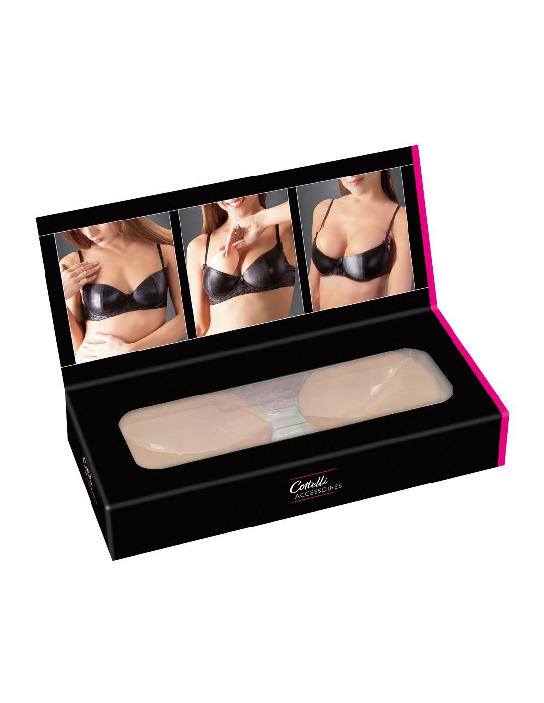 Przytulne silikonowe wkładki z zasugerowanymi sutkami dokładnie dopasowują się do piersi i wyczarowują ekscytujący dekolt. Do dyskretnego umieszczenia w biustonoszu. Materiał nagrzewa się w kontakcie z ciałem.