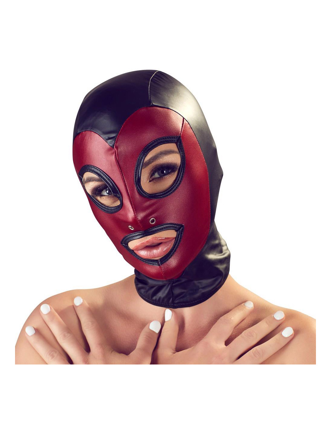 Wysoce elastyczna maska na głowę, która idealnie dopasowuje się do skóry. Dookoła czarna z czerwonym polem czołowym. Z dużymi, czarnymi otworami na oczy i usta oraz oczkami na nozdrza. Onesize - pasuje zarówno Jemu, jak i Tobie.