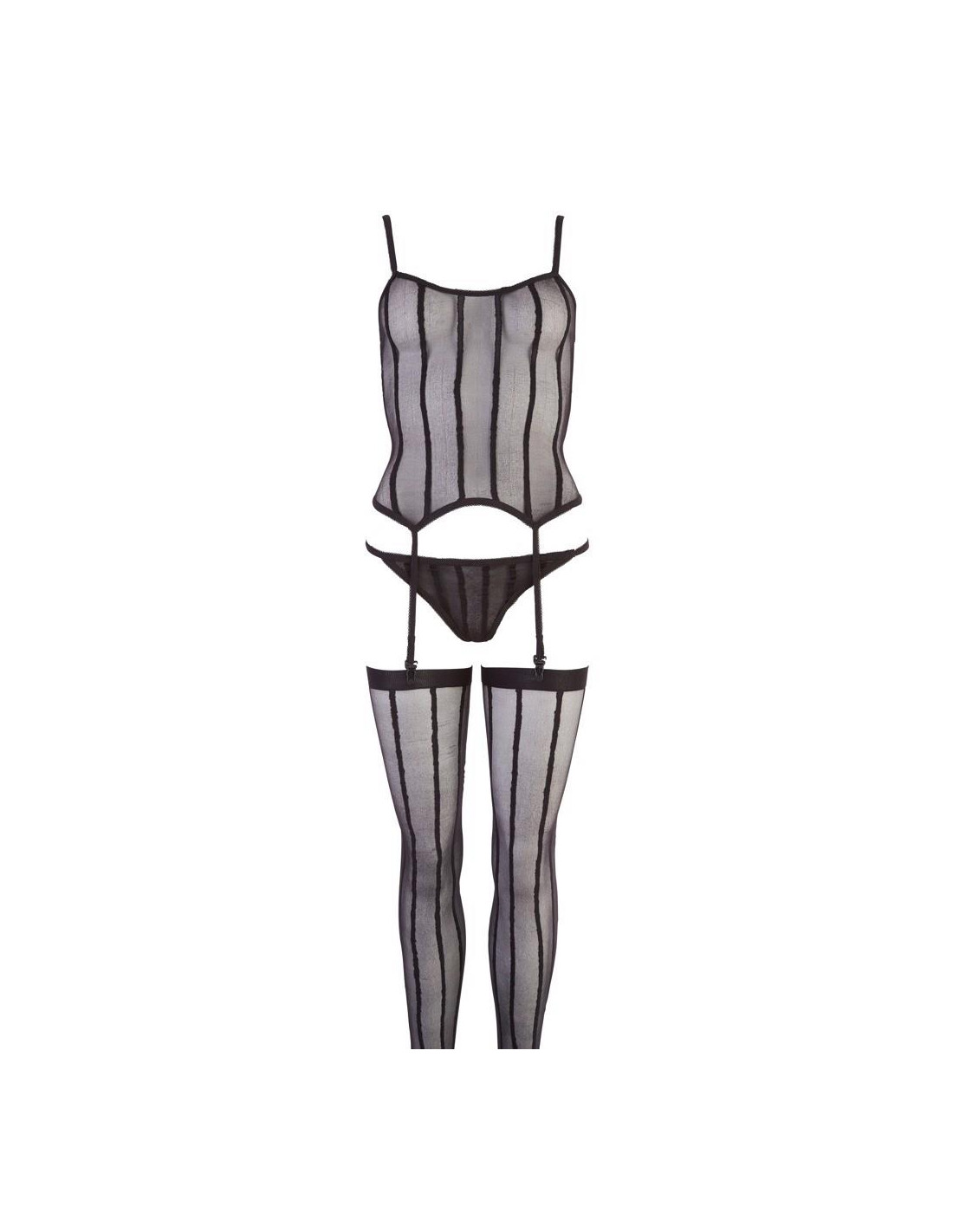 Ta koszulka na szelkach pochodzi z pasujących pończoch i jest już sam kompletny strój uwodzenia! Pasujące stringi mogą, ale nie muszą być noszone razem z nim lub przynajmniej nie za długie....