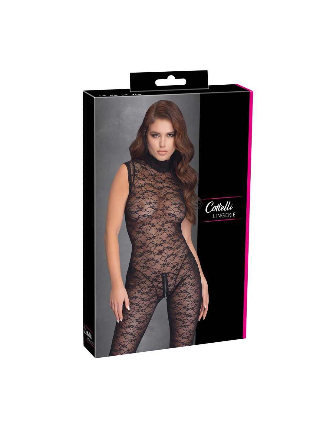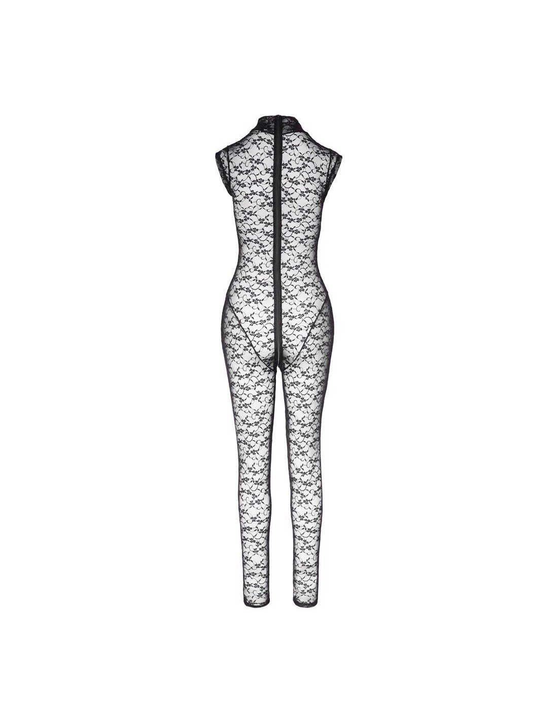 Kombinezon bez rękawów marki Cottelli LINGERIE wykonany w całości z elastycznej, miękkiej koronki, która przylega jak druga skóra. Najważniejszym elementem jest praktyczny dwukierunkowy zamek błyskawiczny, który biegnie od mons veneris przez krocze, a następnie przez plecy aż do szyi!
