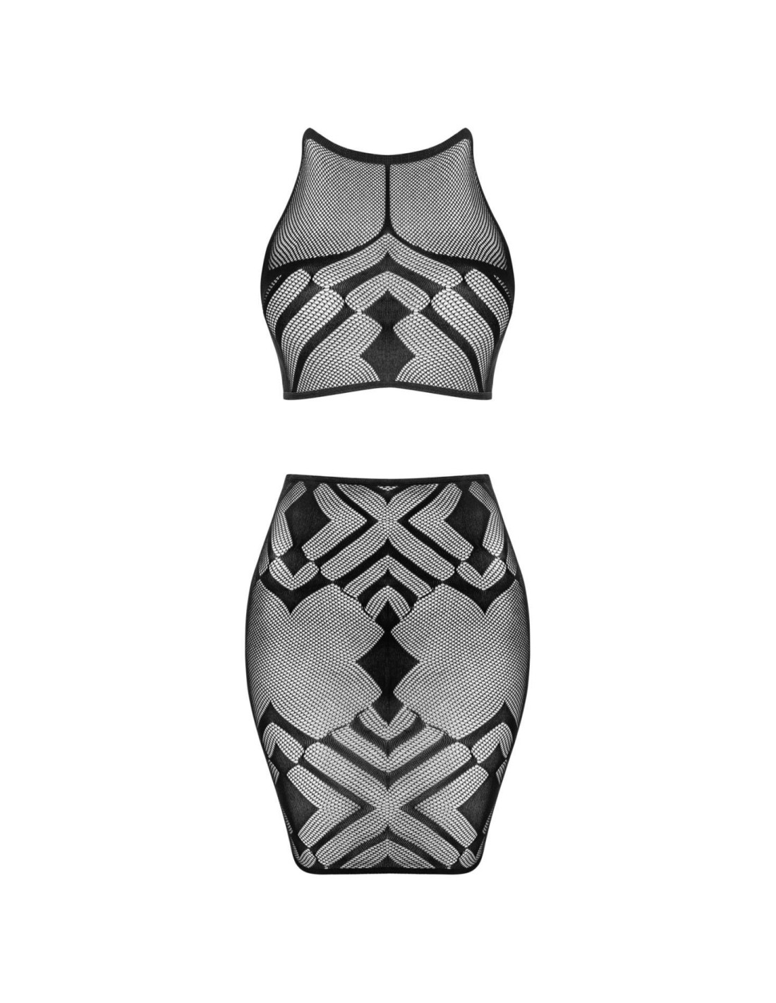 - komplet K101 zawiera krótki top odsłaniający brzuch oraz obcisłą spódniczkę