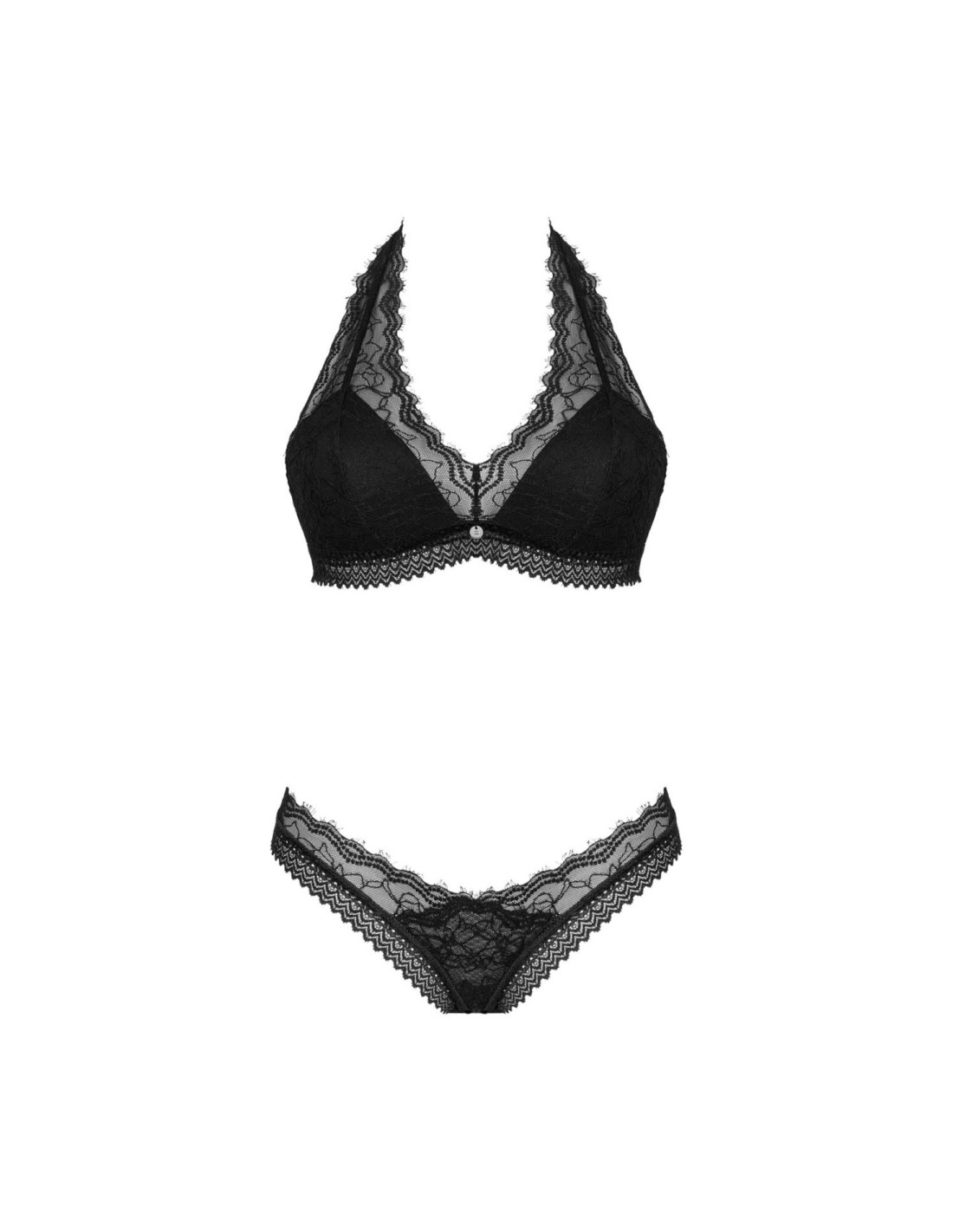 - czarny zestaw bielizny złożony z biustonosza i stringów