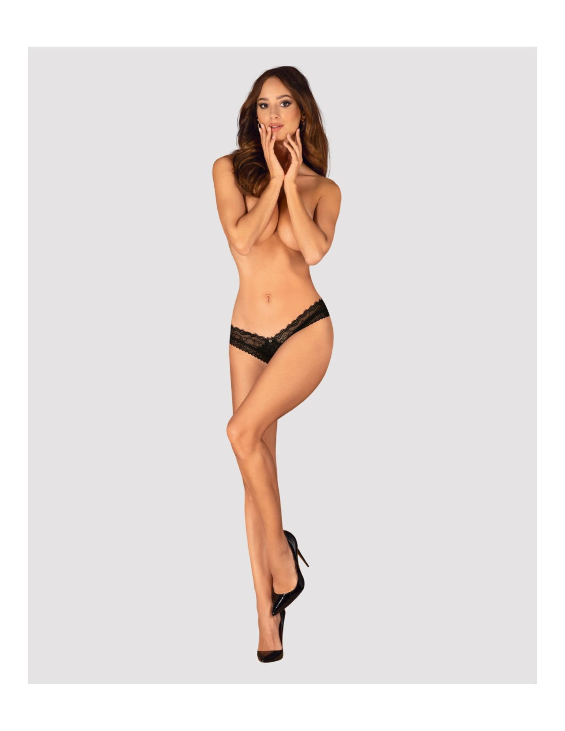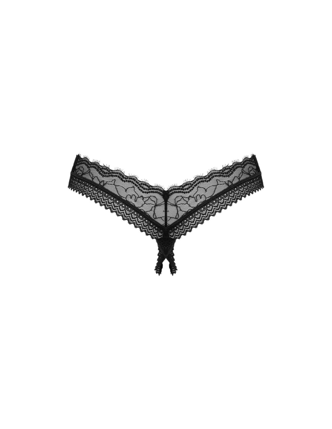 - klasyczne, czarne stringi z otwartym krokiem – finezyjny krój