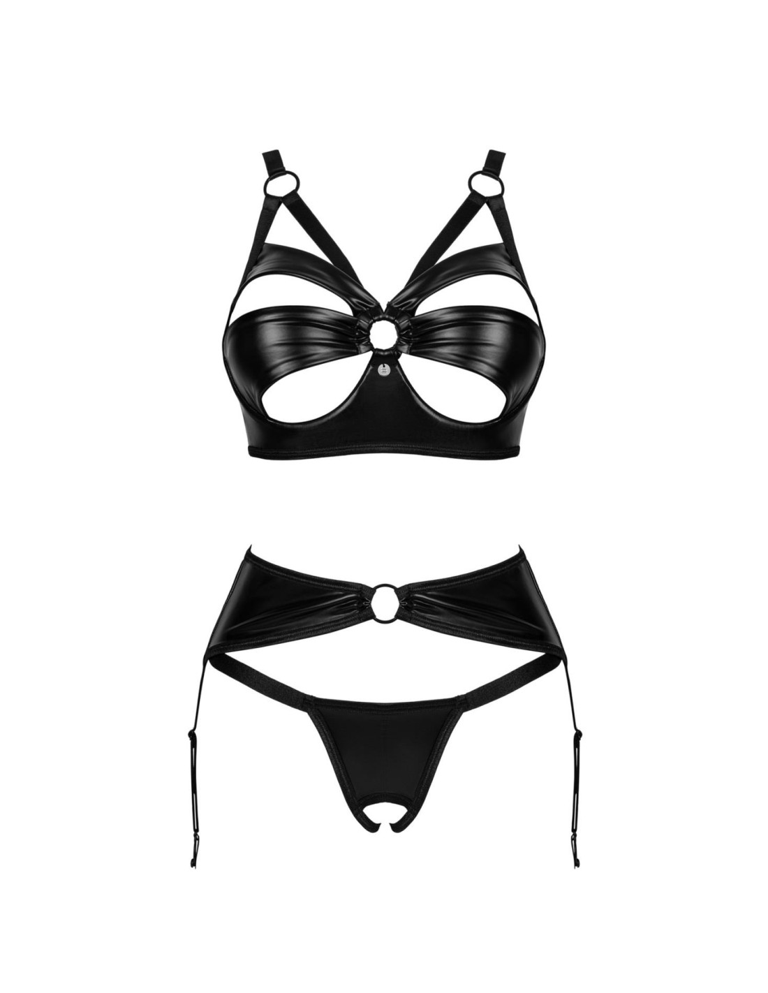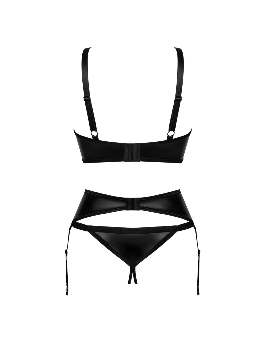 - zestaw czarnej bielizny składający się ze stringów, biustonosza i pasa do pończoch