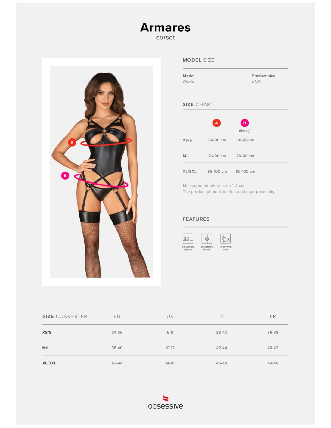 - znakomite dopasowanie dzięki kilkustopniowemu zapięciu oraz regulowanym paskom do pończoch i ramiączkom