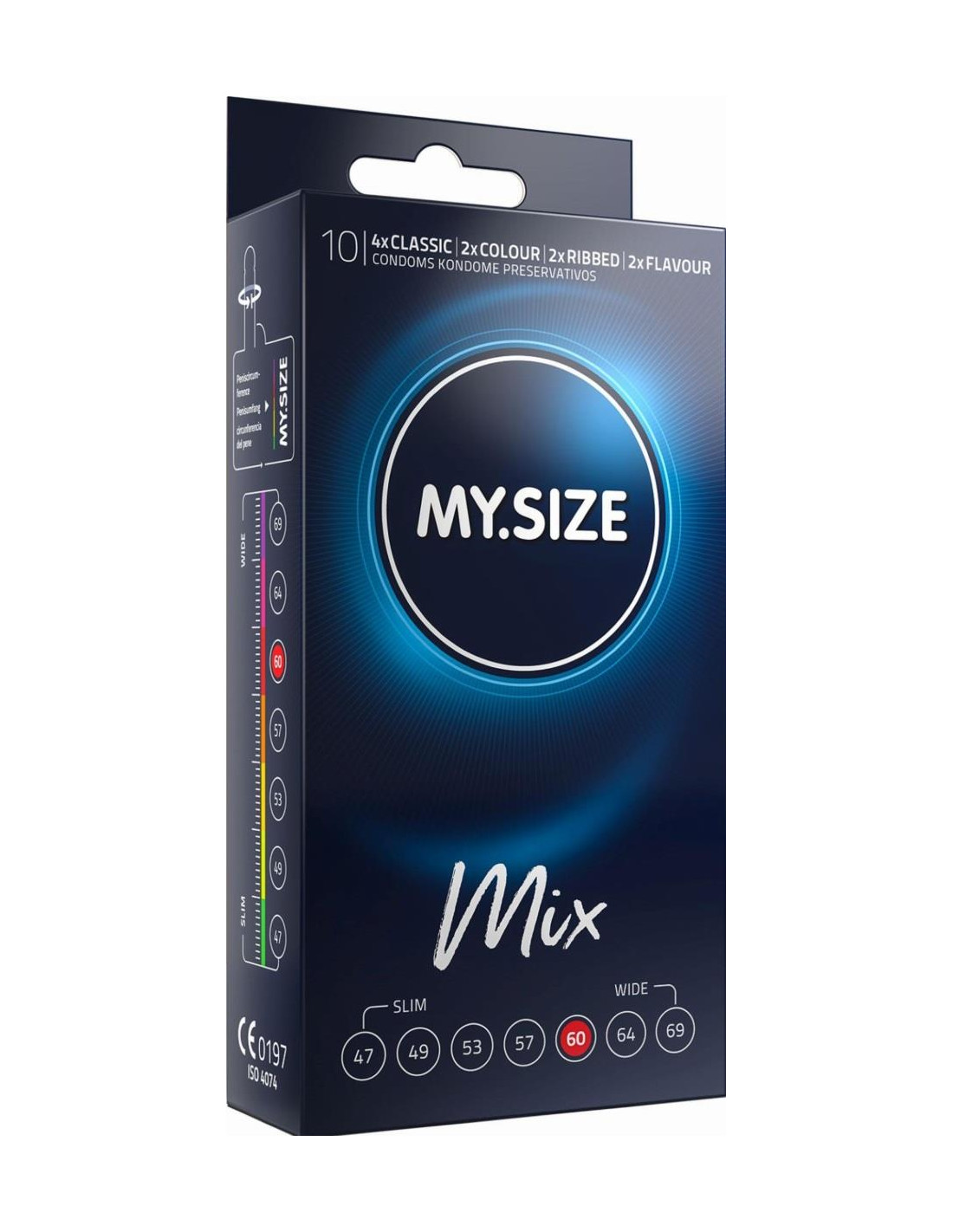 Ten mieszany pakiet zawiera 4 klasyczne prezerwatywy, 2 kolorowe, 2 prążkowane i 2 smakowe prezerwatywy.