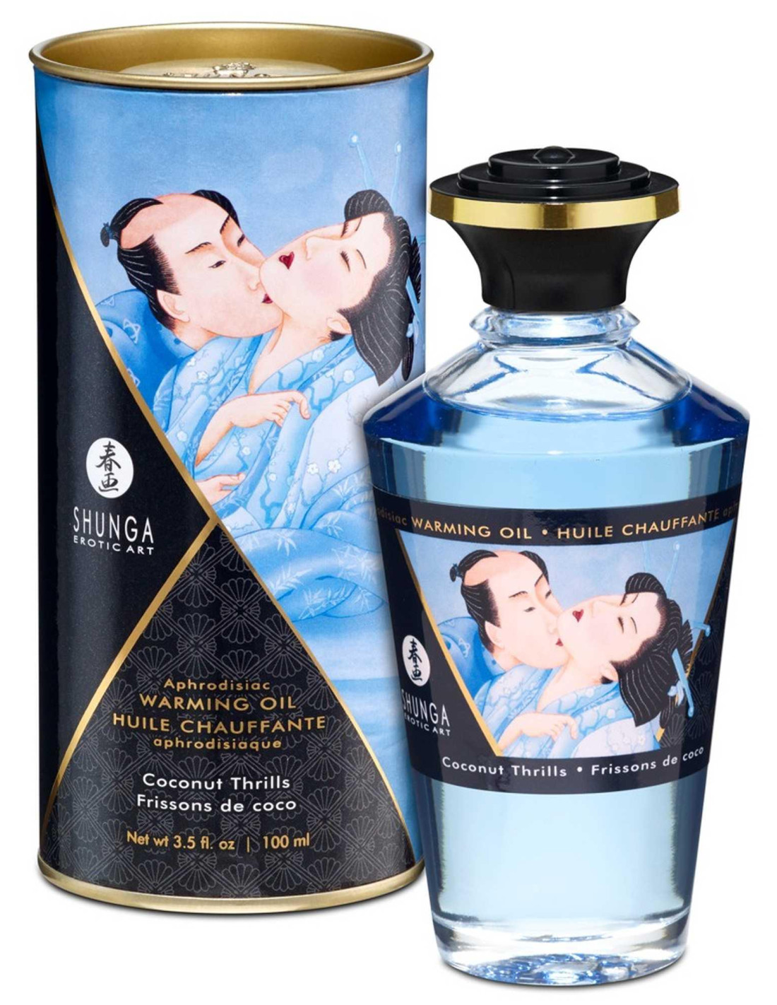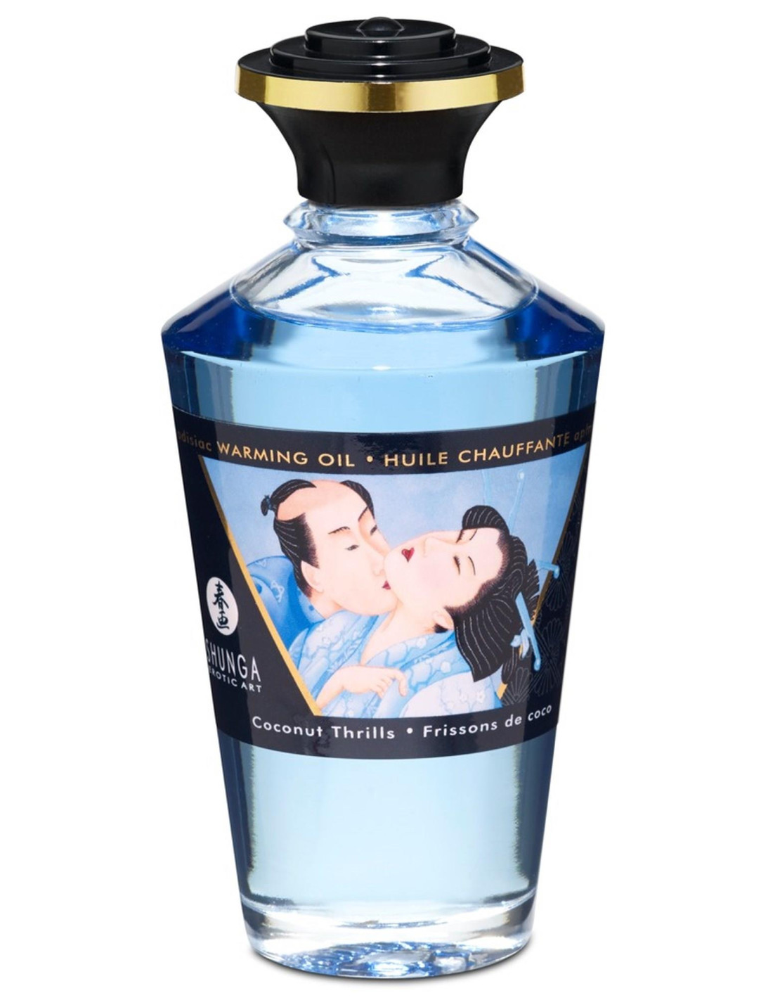 Luksusowy Afrodyzjak Warming Oil Coconut Thrills marki Shunga o pysznym kokosowym aromacie, który podczas intymnego masażu rozbudza wszystkie zmysły i sprawia, że chcesz więcej! Ma też efekt mrowienia ciepła, który subtelnie wzmaga się przy oddychaniu na nim. Naturalne składniki pielęgnują skórę, a wykwintny spożywczy aromat zaprasza do pocałunku. Uczta dla ciała i duszy - i idealny prezent w eleganckim szklanym flakonie w pięknym cylindrze opakowaniowym.