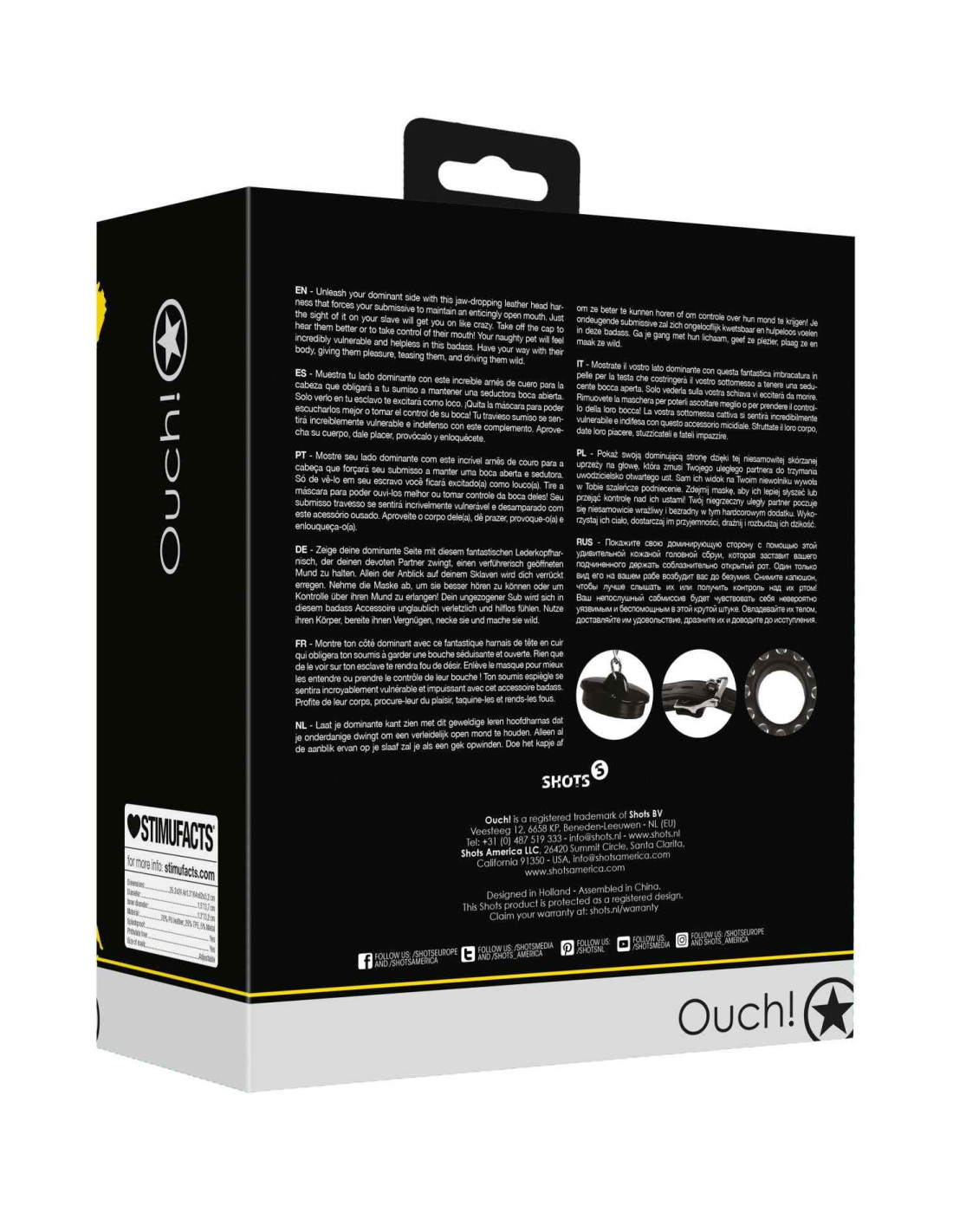 Open Mouth Gag Head Harness with Plug Stopper - Black