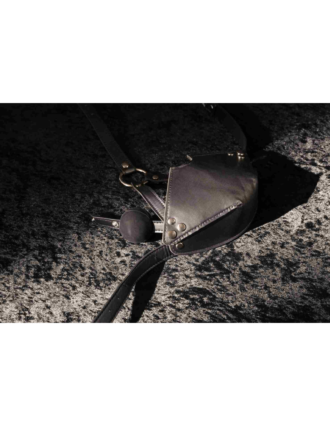 Head Harness with Mouth Cover and Solid Ball Gag - Black