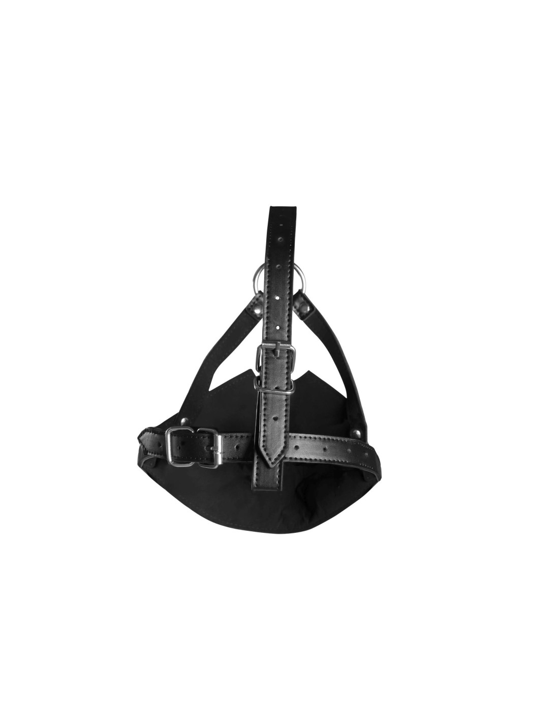 Head Harness with Mouth Cover and Breathable Ball Gag - Black
