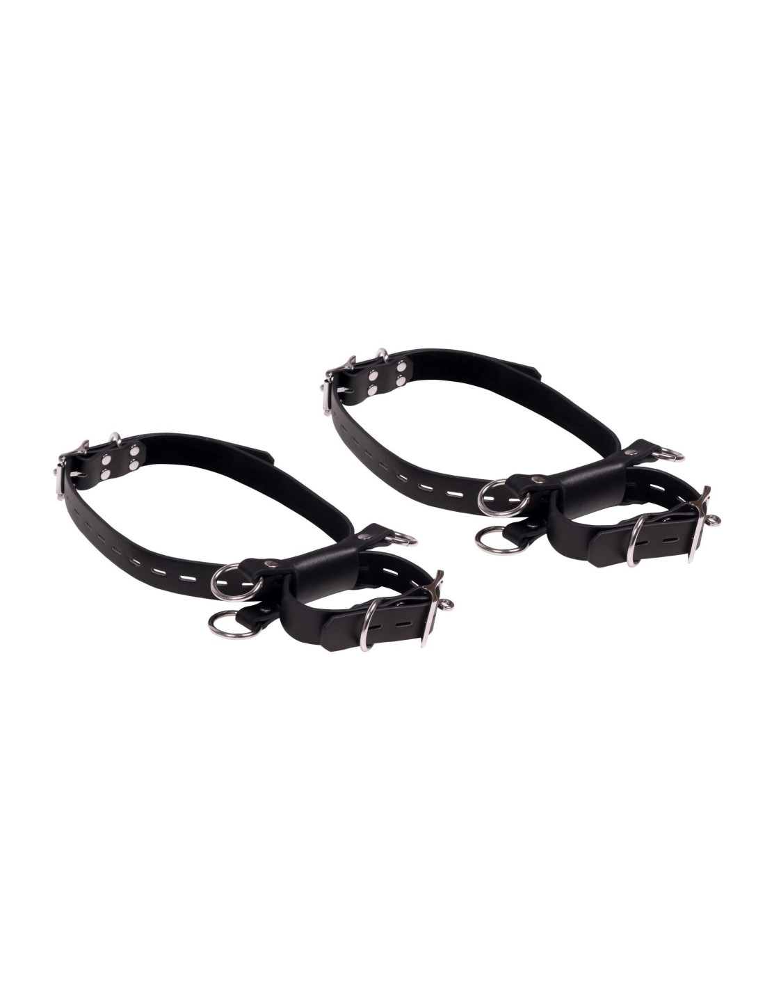 Specyfikacja Kajdanki na kostki i ręce mają 10 otworów do regulacji długości.
