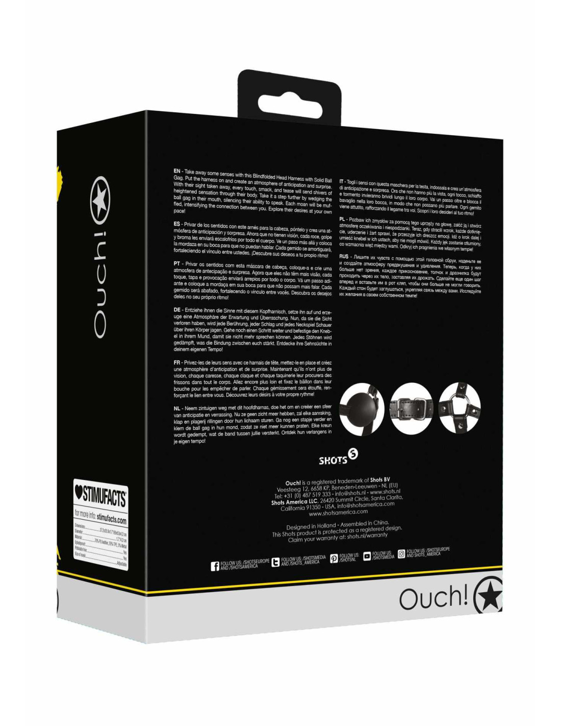 Blindfolded Head Harness with Solid Ball Gag - Black